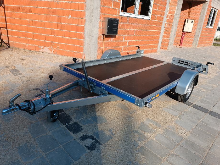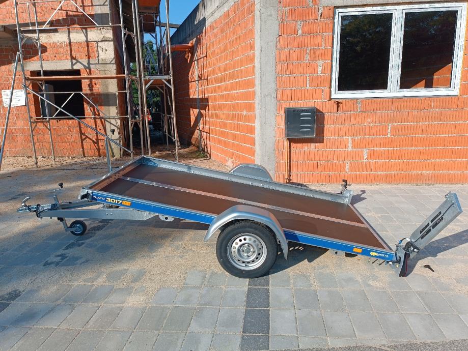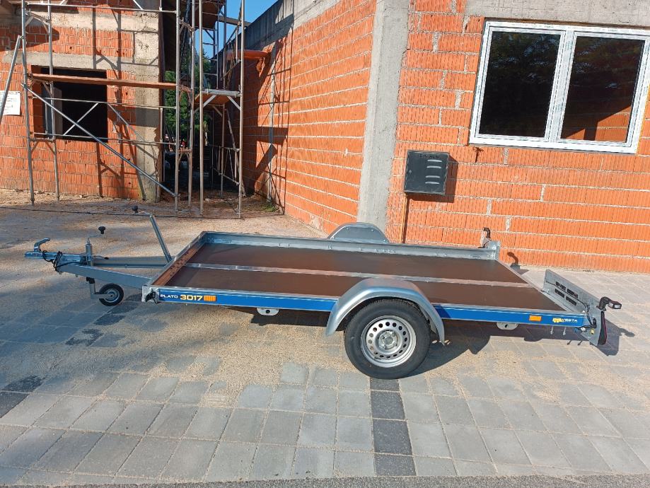 Prikolica PLATO 3017 odlikuje savršen utovar na platformu, idealno za qadove, manje traktore ili radne mašine, koji se mogu utovariti bez napora sa izuzetno niskim uglom na stabilnu šasiju. Šasija je izuzetno stabilna i laka, zaštićena toplim pocinčanjem, sa niskim težištem i sa mogućnošću kipanja. Knott osovina velike nosivosti, ali smanjena upisana nosivost na 750kg zbog registracije pod laku prikolicu.