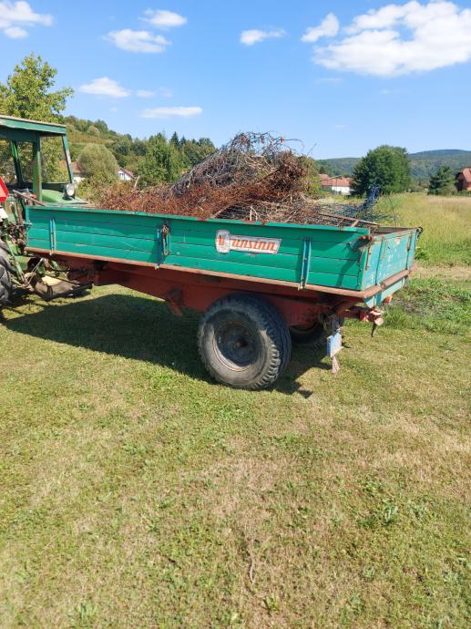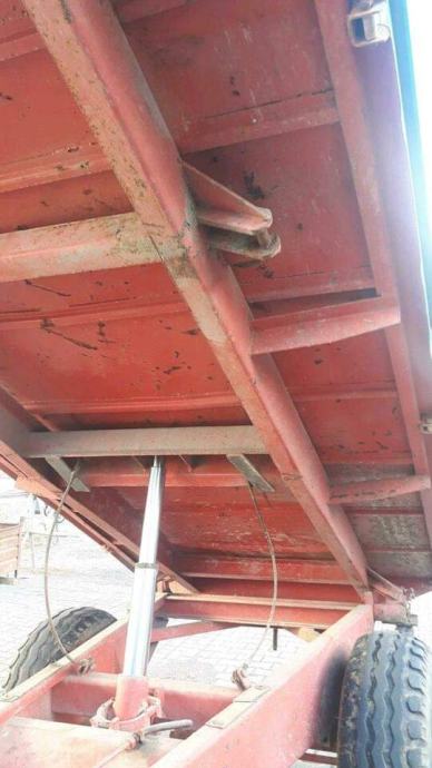 Cilindar suh, gume Fulda 90%, kipa na sve tri strane bez greške, izuzetno jaka šasija (nije repa ko ove nove), gume Fulda (nisu ispucane) ,nigdje varena ni savijana, kočnica i struja radi, ima i kuku iza za vucu. Pod prikolice od jake pločevine, stranice drvene u originalnoj boji (nisu trule).