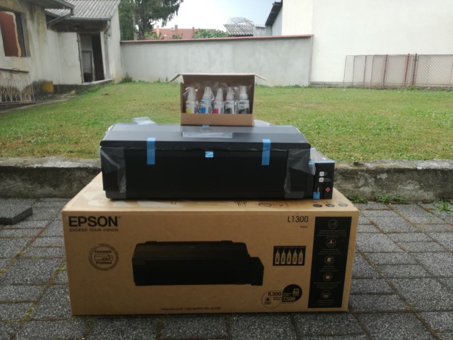 Prodajem printer EPSON L1 3000 (u kompletu sa 5 boja za tkanine) i termo prešu TH 38.
