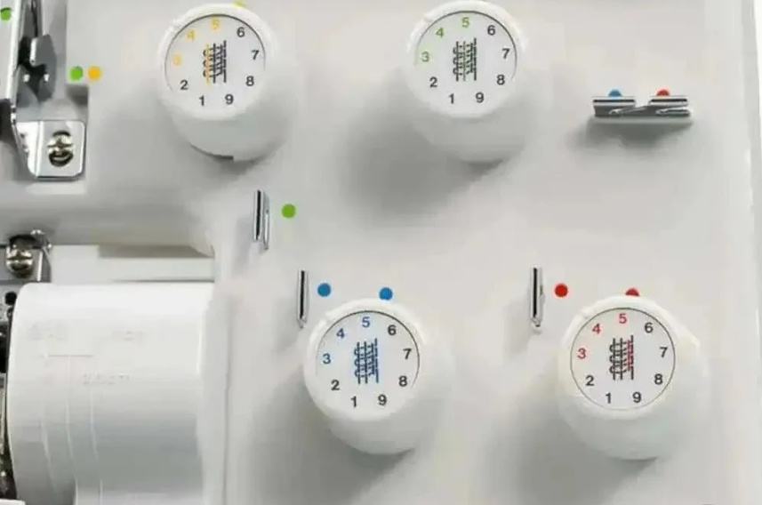 Regulatori napetosti s jednim okretom imaju označene standardne vrijednosti za jednostavno i dosljedno podešavanje. Posebno dizajnirani vodiči drže konac na mjestu i osiguravaju pravilnu napetost pri bilo kojoj brzini šivanja.