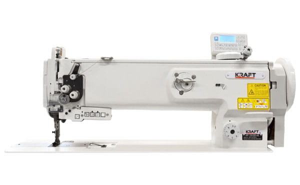 Automatski šivaći stroj s jednom iglom s dugom rukom (long-arm) i trostrukim transportom (igla, zubci i hodajuće papučice) za šivanje teških materijala kao što su koža, namještaj i presvlake automobila. Podesiva visina hoda nožice pomoću kalibriranog kotačića na glavi stroja.