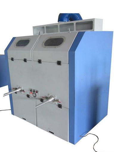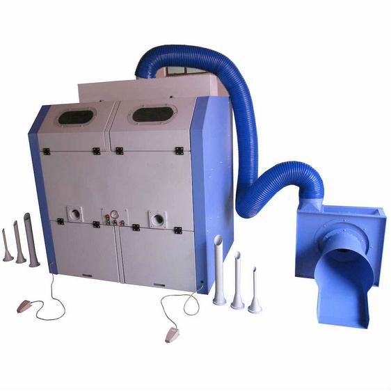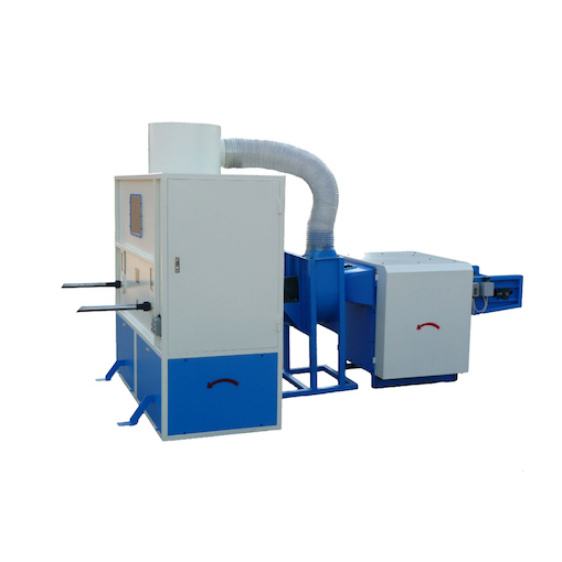 Automatski stroj za punjenje jastuka, dječjih igračaka, jastuka za životinje, jastuka za vrat sa poliesterskim i sličnim punilom – otvoreno vlakno 32mm*7D ili vlaknaste loptice. Stroj može biti sa dvije stanice za punjenje ili jednom ovisno o potrebnom kapacitetu. Stroj je opremljen sa automatskim sistemom za punjenje, visokog kapaciteta, upravljanje pomoću nožne pedale. Stroj posjeduje izmjenjive cijevi za punjenje proizvoda raznih promjera i oblika – od 10cm do 100cm. Potreban je priključak na stlačeni zrak, te napon 400V (3 faze).