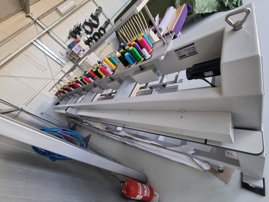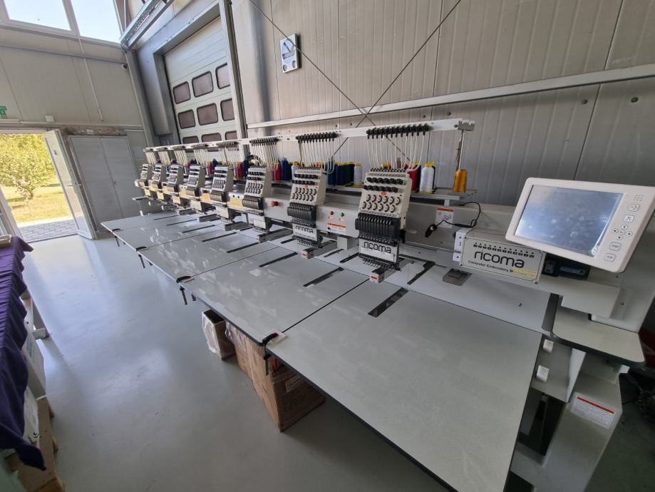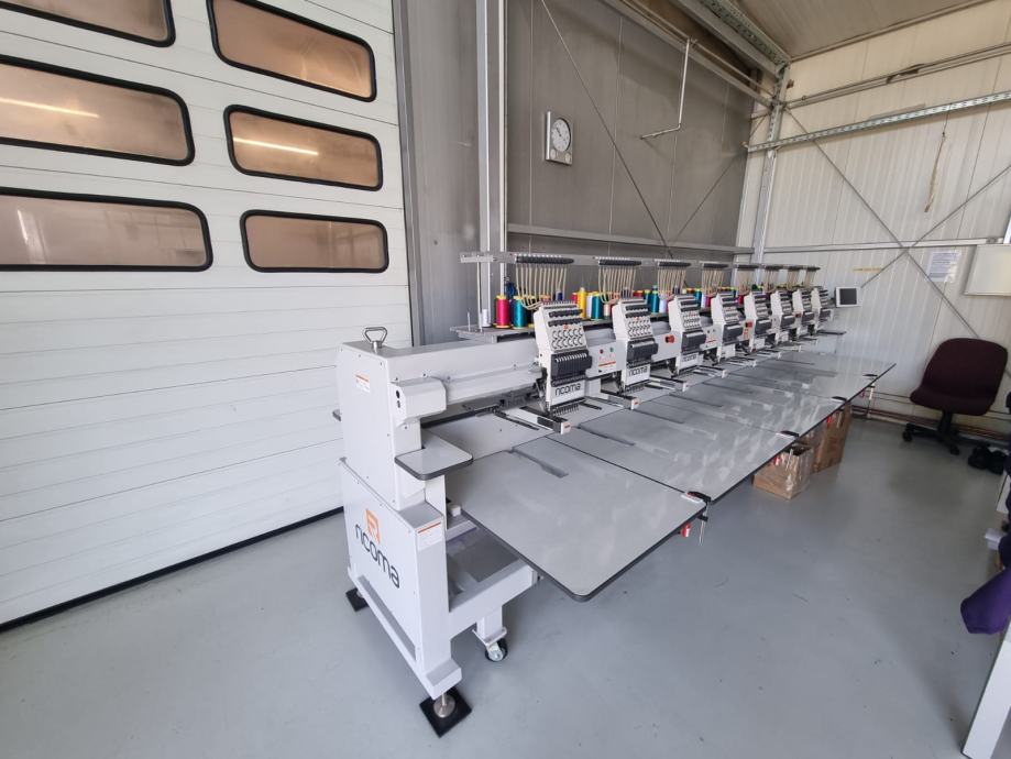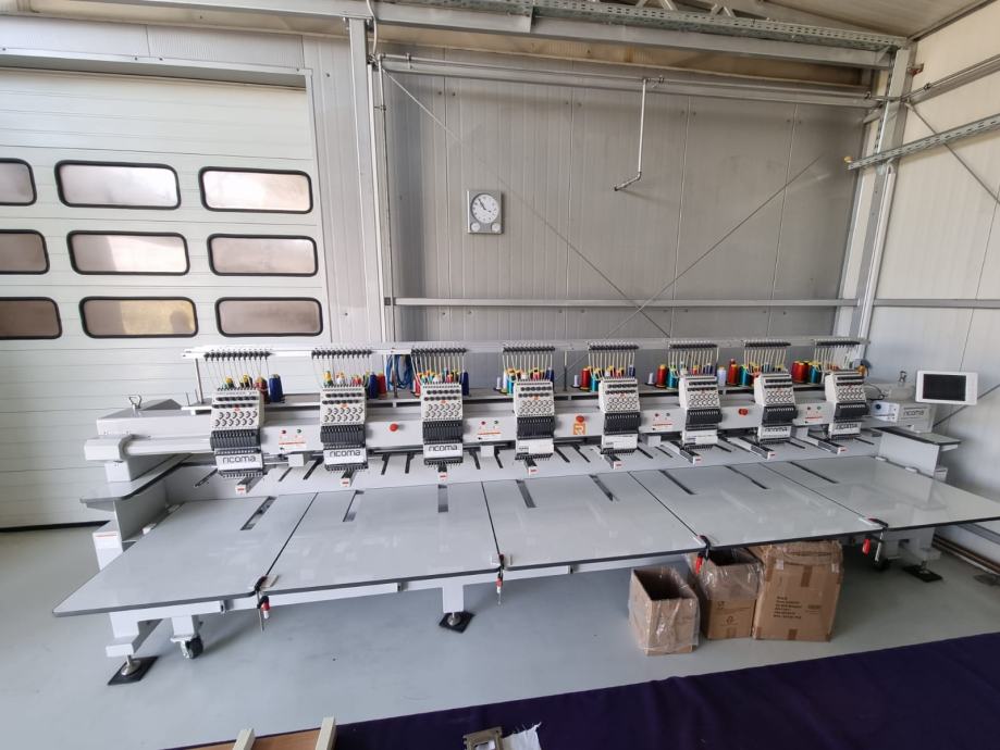 Kompaktni stroj za vezenje s osam glava i 12 igala. Pogodan za vez na ravnim površinama, gotovim proizvodima, kapama itd.