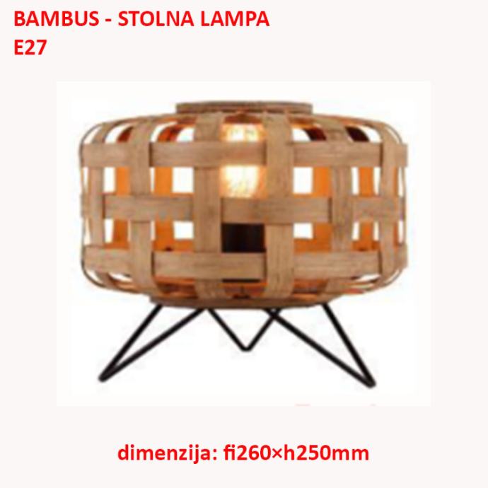 Rasvjeta izrađena od bambusa u obliku plafonjere, visilice i stolne lampa.