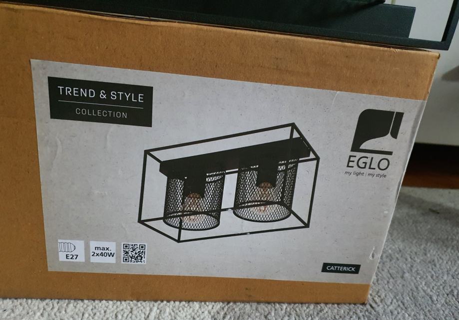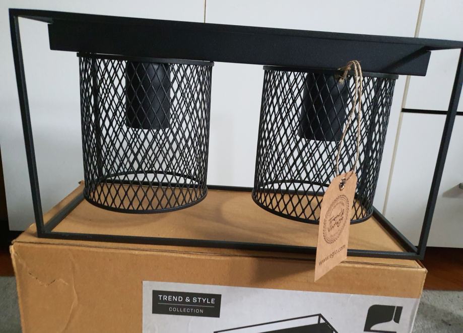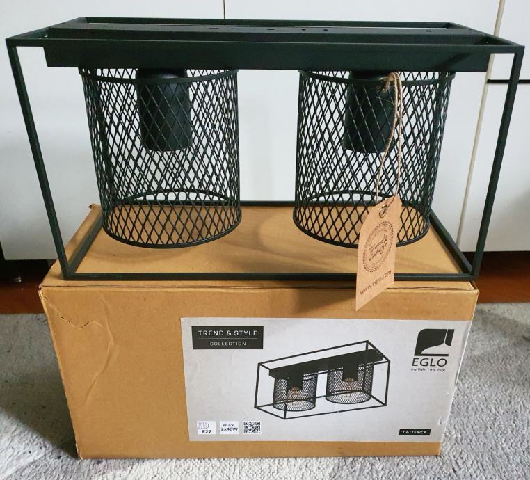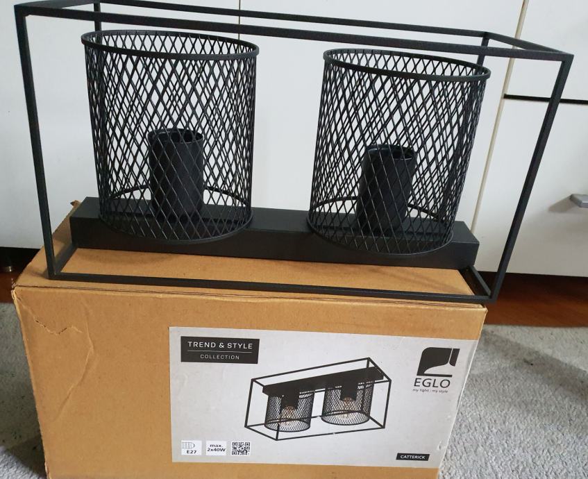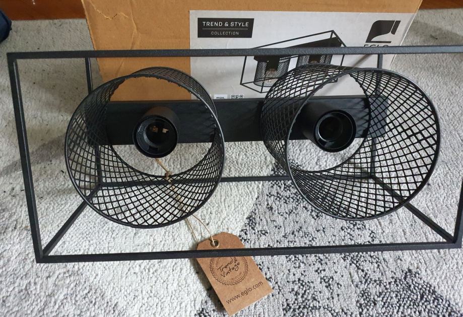 Eglo CATTERICK stropna svjetiljka izrađena je od dva okrugla, crna žičana sjenila izrađena od mreže, koja su okružena metalnim okvirom.