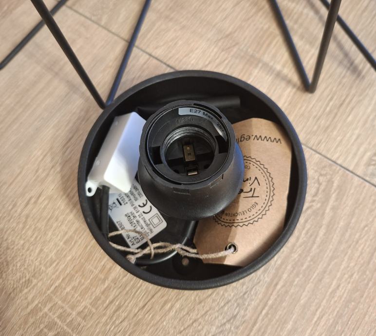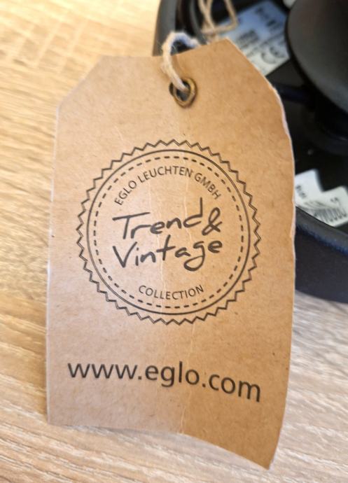 Stropna plafonjera marke EGLO, dimenzija 56 x 21,5 cm. Nikad montirana. Crni metalni okvir i E27 grlo za žarulju. Spremna za ugradnju.