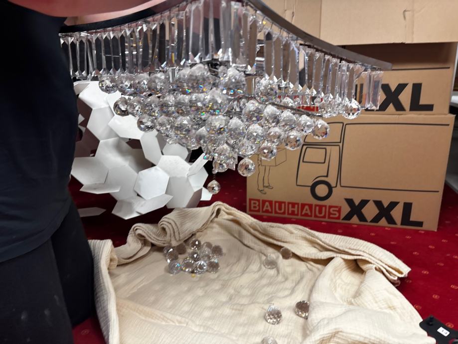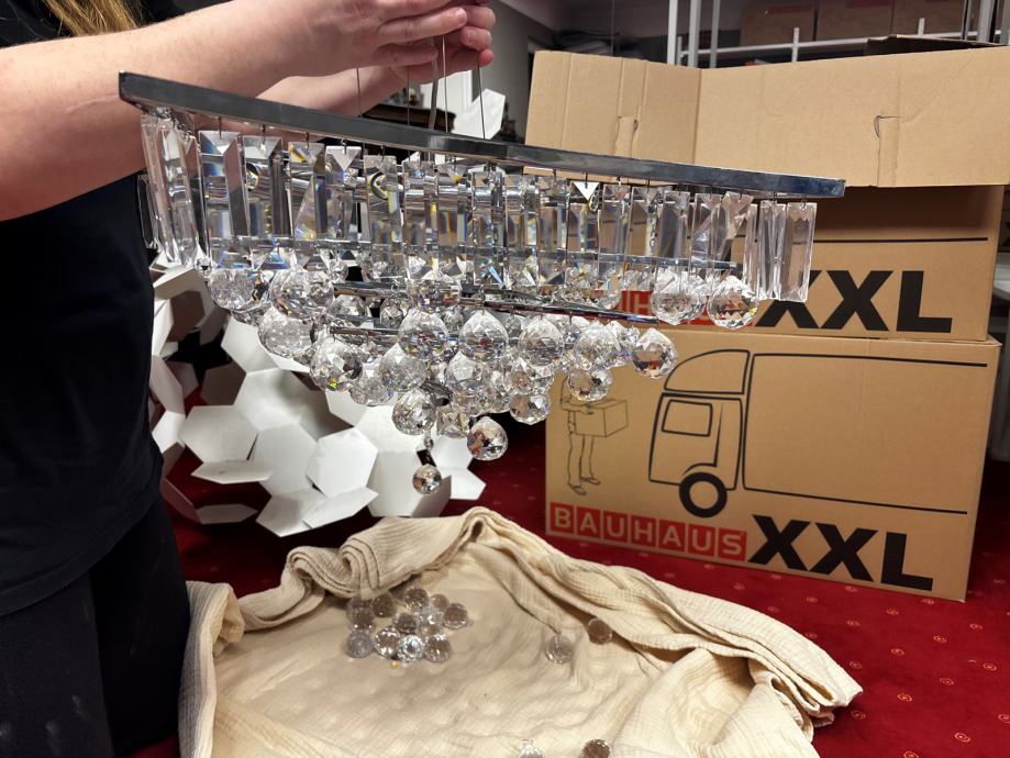 Materijal: metalna (krom) konstrukcija + stakleni/kristalni elementi
