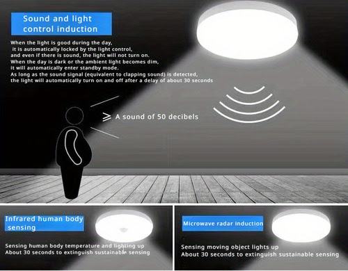 Unutarnja vanjska plafonjera sa senzorom pokreta i zvuka ( pljesak ili zatvaranje vrata)za paljenje, svjetiljka za strop ili zid