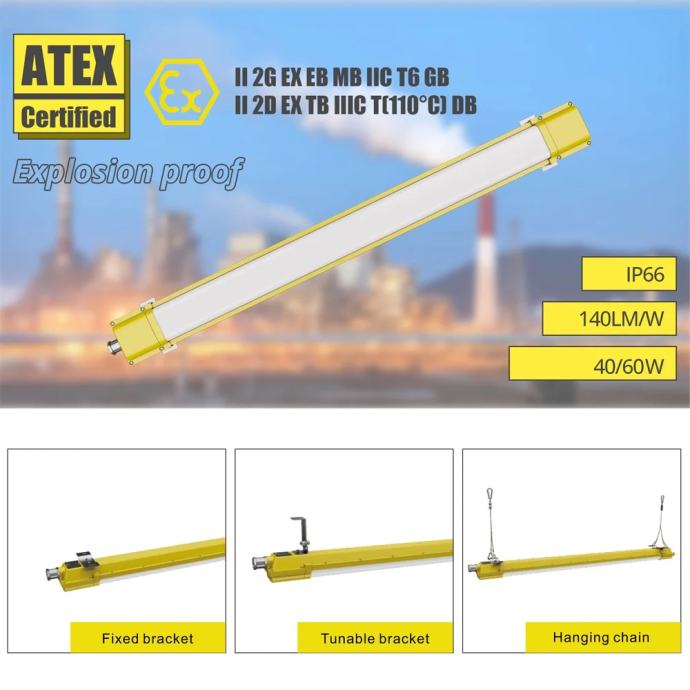 LED vodotijesna lampa Ex-Proof ima izvrsnu funkciju zaštite od eksplozija i pogodna je za eksplozivne zone I, II, 21 i 22, uključujući plinovita okruženja i razna zapaljiva i eksplozivna mjesta. Ova Ex-Proof LED vodotijesna lampa se uglavnom koristi u željezničkim postajama, elektroenergetskim postrojenjima, metalurgiji, naftnoj industriji, petrokemiji, kemijskoj industriji, čeličanama, zrakoplovstvu, brodogradnji te raznim vrstama tvornica, stanica, velikih objekata, prostora i drugih mjesta. Pruža pouzdano osvjetljenje uz visoku razinu sigurnosti, čineći je idealnim rješenjem za najzahtjevnija industrijska okruženja.