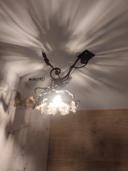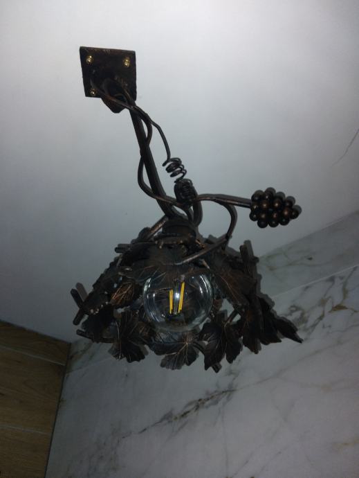 Prodajem stropnu lampu od kovanog željeza. Sjenilo je izrađeno od kovanih listova loze. Ukrašeno lozom i kovanim grozdovima