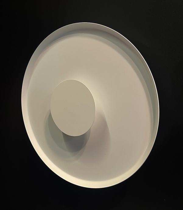 Moderna zidna ili stropna plafonjera, minimalističkog dizajna, s indirektnim izvorom svjetla i naglaskom na ugodno i blago osvjetljenje prostora.