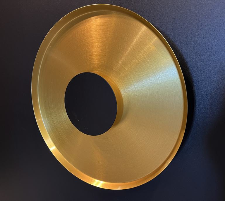 Izrađeno od aluminija, u završnoj obradi mat crna, mat bijela boja i polirana zlatna boja s crnim detaljima.