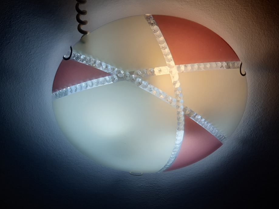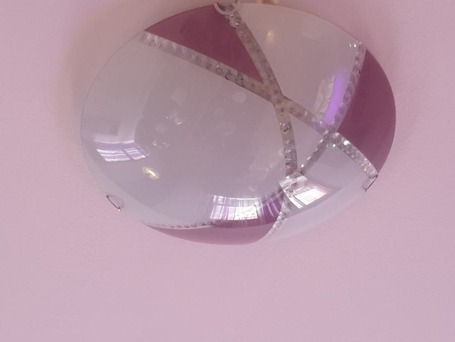 Bijelo-svijetlljubicasta plafonjera,malo korištena,prosarana je dijamanticima,kao nova.
