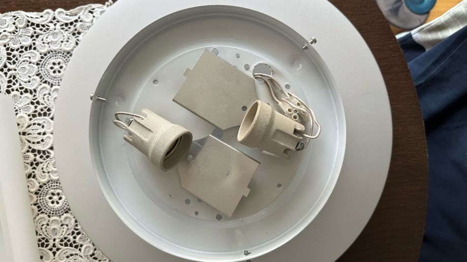 Plafonjera staklena bijela, grla max 2x100W, promjera 45 cm, visina cca 11cm. - 4kom, 36cm -8kom.