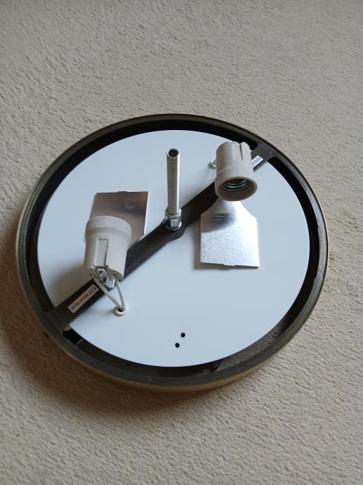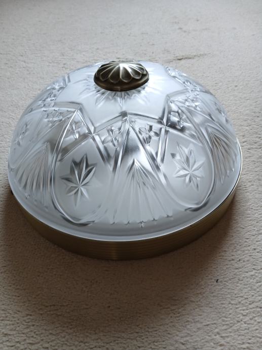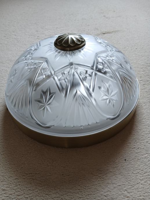 Plafonjera,stropna svjetiljka. Metal i staklo u vidu kristala.Dimenzije promjer 30 cm visina 17 cm. Dva grla E 27 .Ispravna,kao nova.