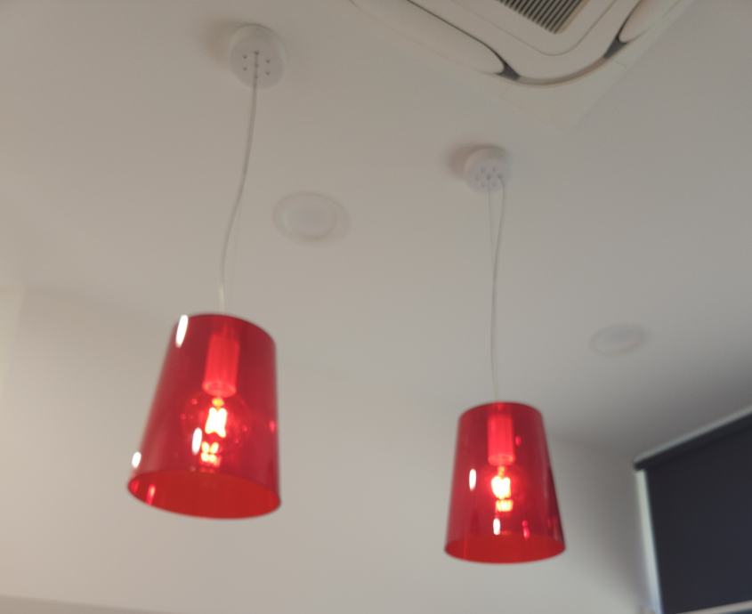Povoljno prodajem 2 nove dizajnerske viseće lampe/lustere Pedrali u crvenoj i/ili bijeloj boji.