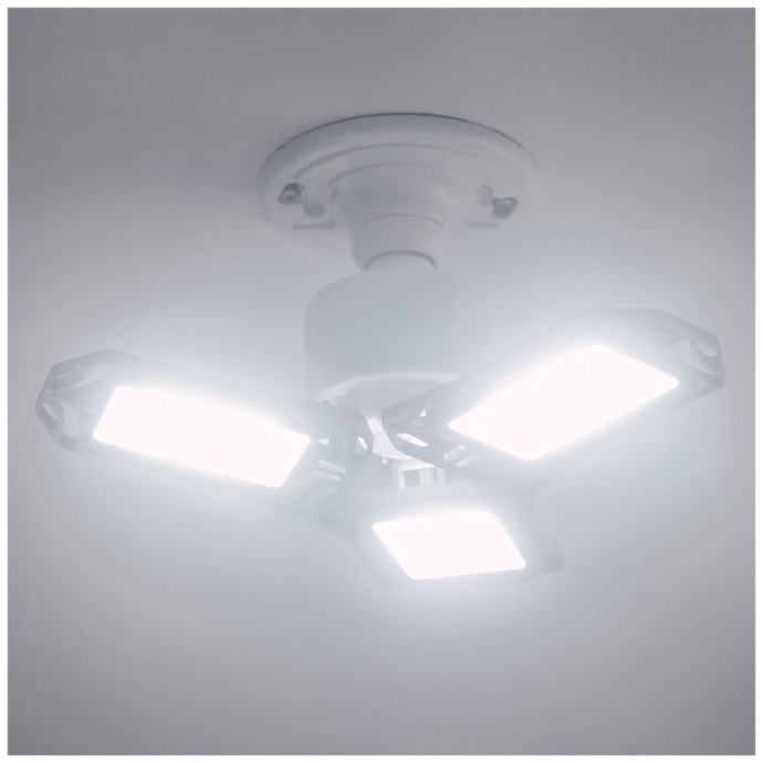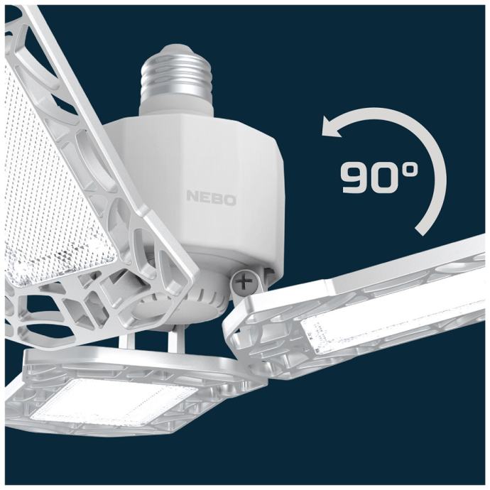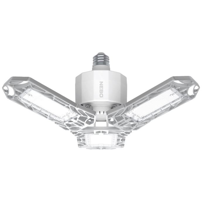 Sijalica LED, garažna, E27, ultra svjetlina, 6000 lm.LED sijalica NEB-OTH-0001-G, za garaže, tavane, podrume ...Snažna svjetlost od 6000 lumena i podesivi LED paneli za 90° usmjeravaju svjetlost tačno tamo gdje Vam je potrebna. Jednostavna i brza montaža, energetski učinkovito, 600% više svjetla od prosječne žarulje od 60 W. Dimenzije (sa presavijenim panelima) 116 x 130 x 127 mm