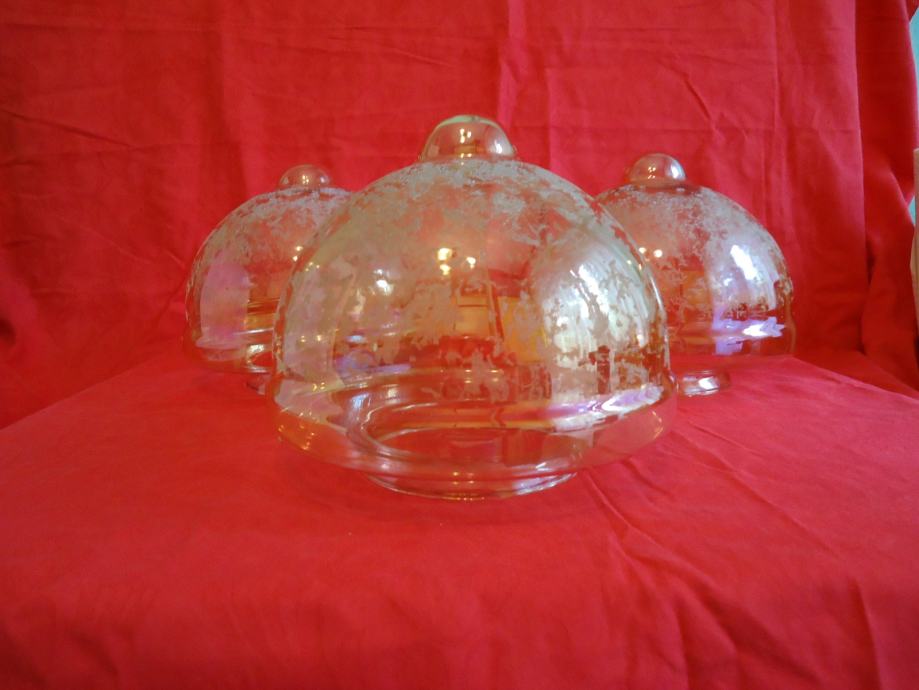 Tri staklena sjenila za plafonjere ili možda luster takovog dizajna.