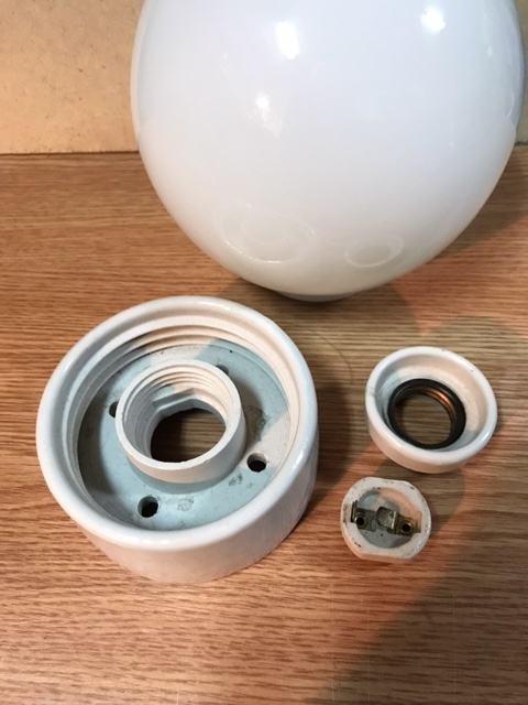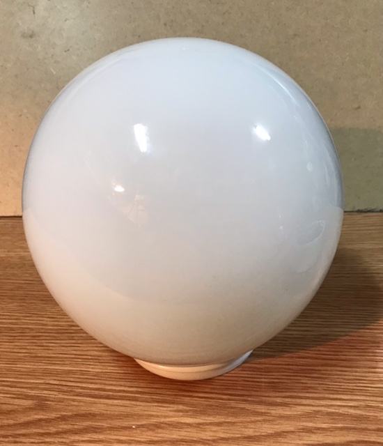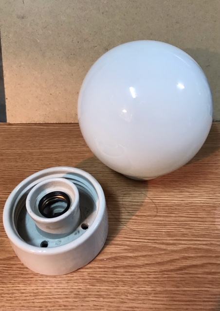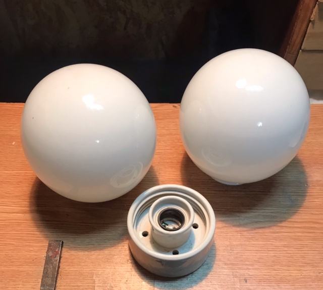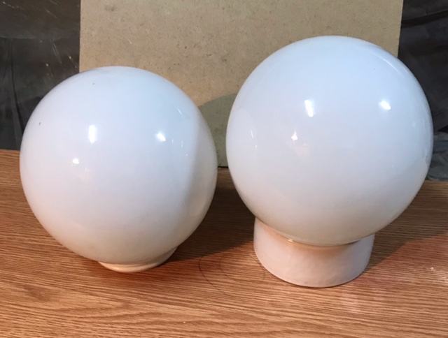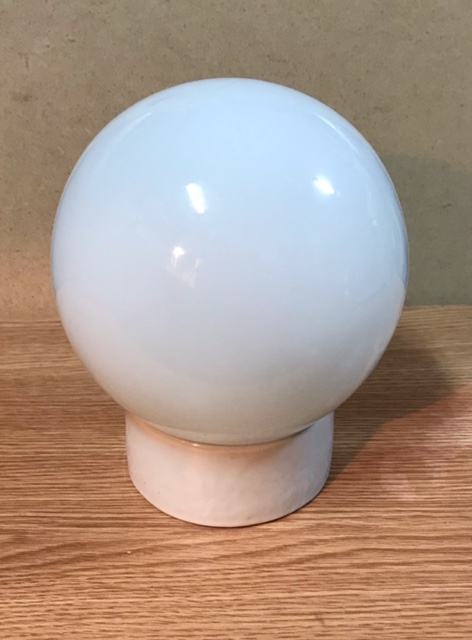 Dvije mliječno-bijele staklene kugle,jedna s keramičkim postoljem za montiranje i druga rezerva.