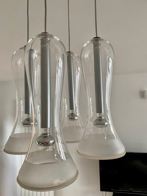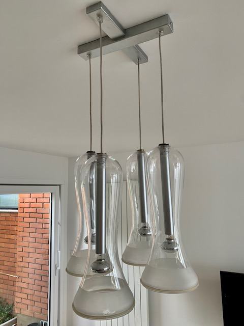 Prodajem stakleni luster. Sastoji se od 4 staklena tuljca ali je jedan pukao.