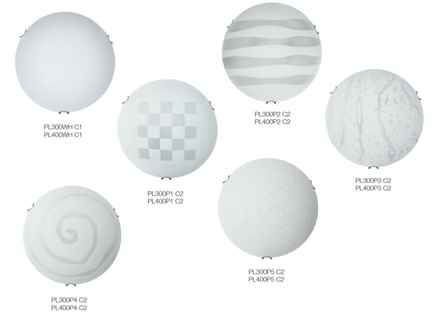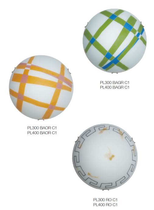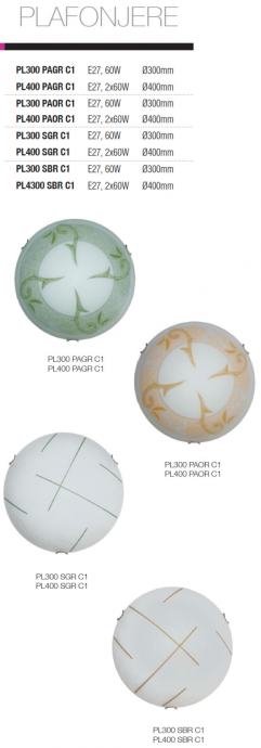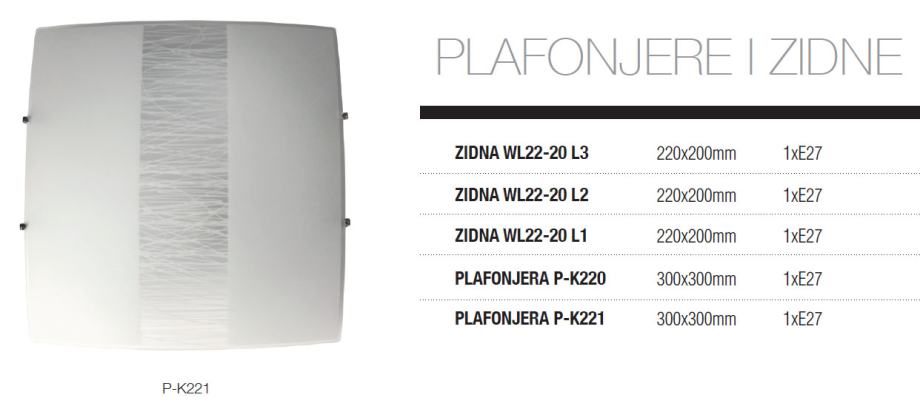 PLAFONJERE stropne i zidne, metalna noseća armatura s grlom E27 i mineralno staklo s dekorativnim dizajnom.