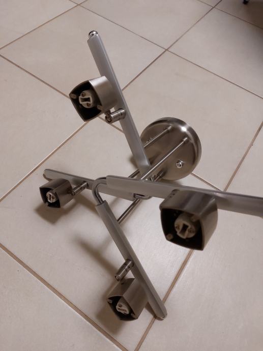Prodajem 2 stropne lampe u potpuno ispravnom stanju. Svaka ima 4 grla za G9 žarulju od po 50 wati ( 200 wati ukupno za jednu lampu), koje izvrsno osvjetljavaju prostor. Svakom grlu može se podešavati pravac osvjetljenja okretanjem u svim smjerovima što dodatno poboljšava karakteristike osvjetljenja u prostoriji. Cijena za obje lampe 45 EUR.