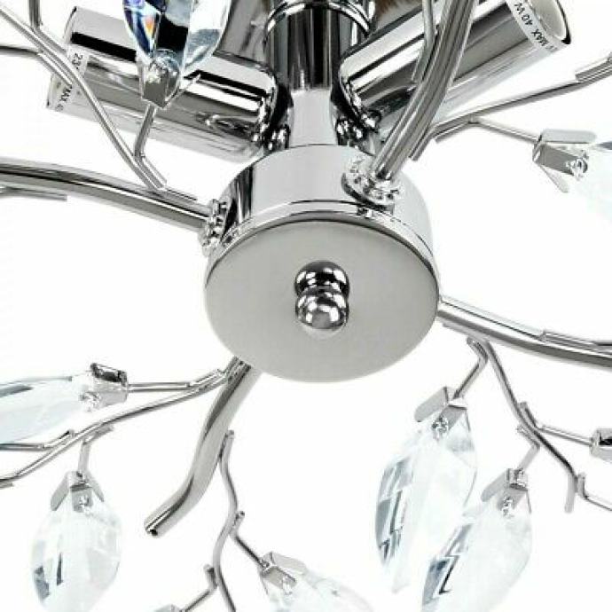 Tri puta po 40 vata unose svjetlost u predsoblje, spavaću sobu ili blagovaonicu. Osim ugodne atmosfere osvjetljenja, ovaj elegantni aranžman dočarava i vrlo posebnu atmosferu u vašem dnevnom boravku. Dvojac prozirnog lišća i kromiranih grana ima dekorativni učinak i može se jednako kombinirati s klasičnim ili modernim stilovima življenja. Brušeni akrilni listovi stvaraju prekrasnu igru svjetla i sjene.