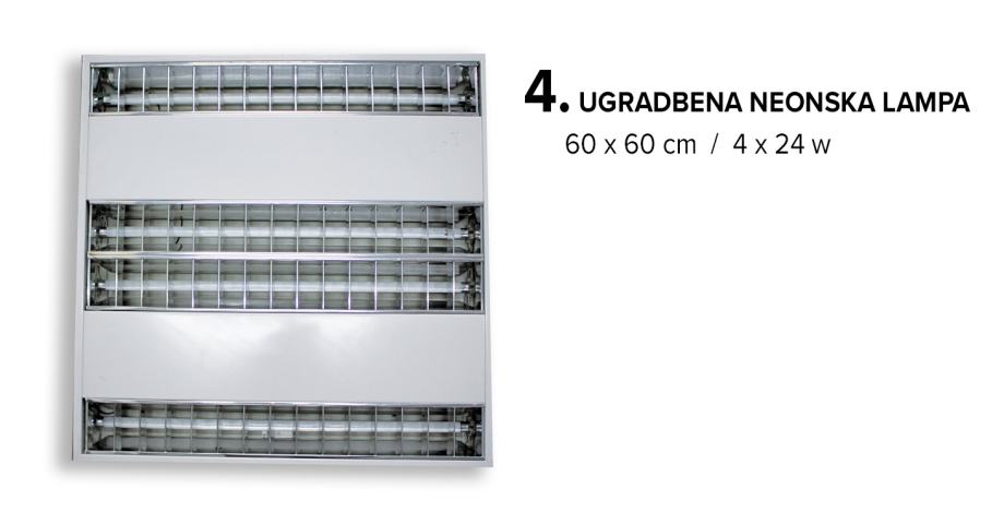 4. Ugradbena neonska lampa 60 x 60 cm / 4 x 24 w, 1 komad = 15 EUR