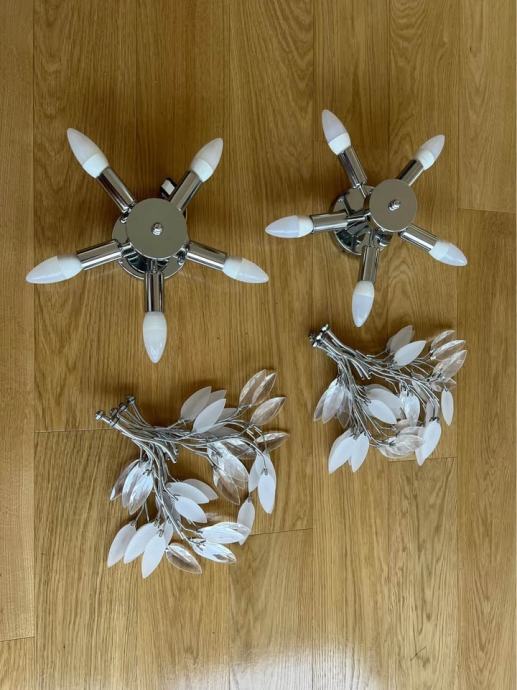 Prodajem stropne svjetiljke s akrilnim lišćem sa 5 žarulja E14 bijela, veličina 100x15 cm, 220-240 V - 2 komada.