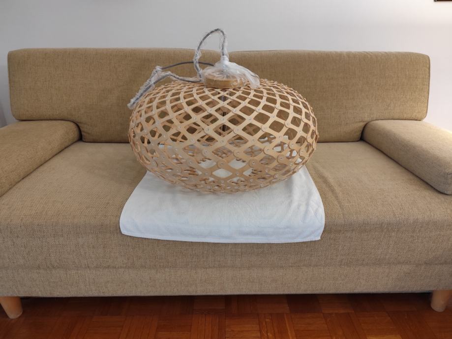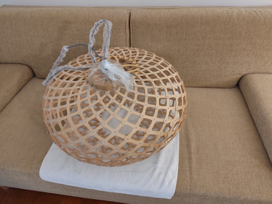 Prodajem novu viseću stropnu lampu sa slike. Lampa je izrađena od bambusovih traka. Za dodatne informacije zvati na telefon 091/5453-594.