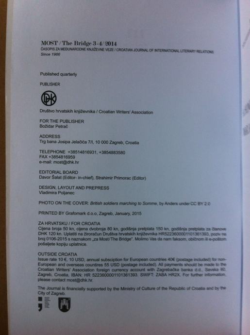 Most The Bridhe: časopis za međunarodne književne veze, 3-4, 2014.