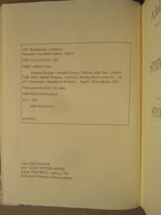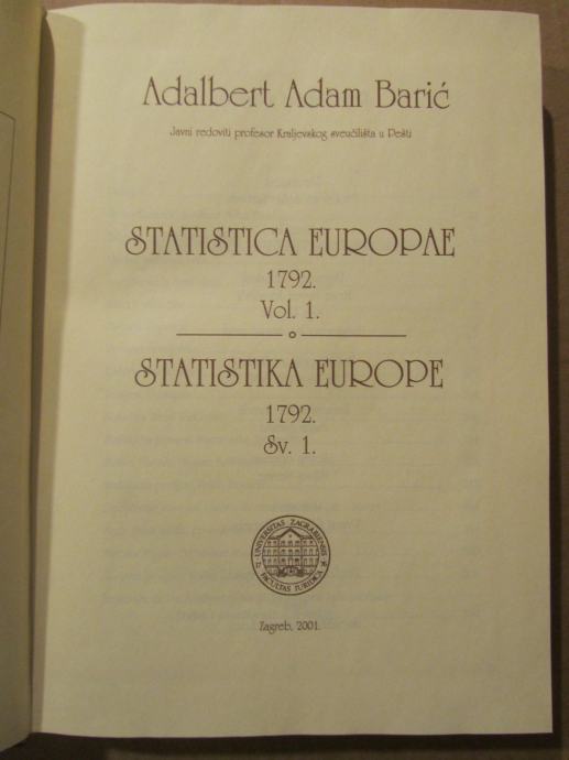 Adalbert Adam Barić – Statistika Europe 1792. sv. 1. (Z57)