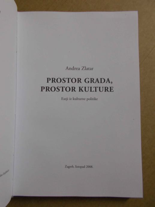 Andrea Zlatar – Prostor grada, prostor kulture : Eseji iz kulturne politike