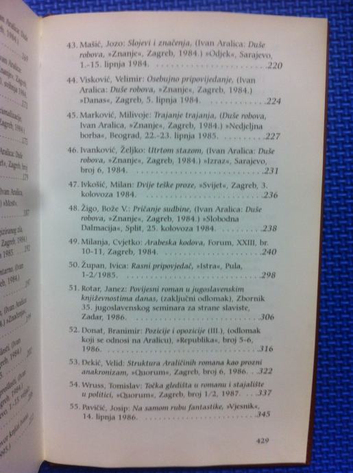 Aralica u očima književne kritike. I. knjiga, Ogledi i recenzije pojedinih knjiga