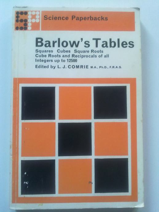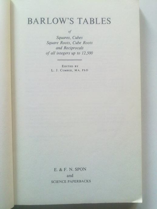 Barlow's tables of squares, cubes, square roots, cube roots, and reciprocals of all integers up to 12,500