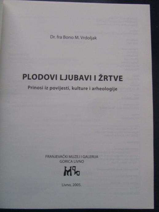 Bono M. Vrdoljak – Plodovi ljubavi i žrtve. Prinosi iz povijesti, kulture i arheologije