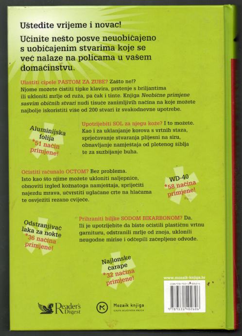 Neobične primjene sasvim običnih stvari : više od 2000 načina kako uštedjeti novac i vrijeme pomoću 200 uobičajenih predmeta iz vašeg domaćinstva