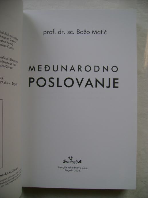 Božo Matić - Međunarodno poslovanje - izdavač Sinergija nakladništvo, Zagreb 2004. godine, 17 x 23 cm, meki uvez, 443 stranice.