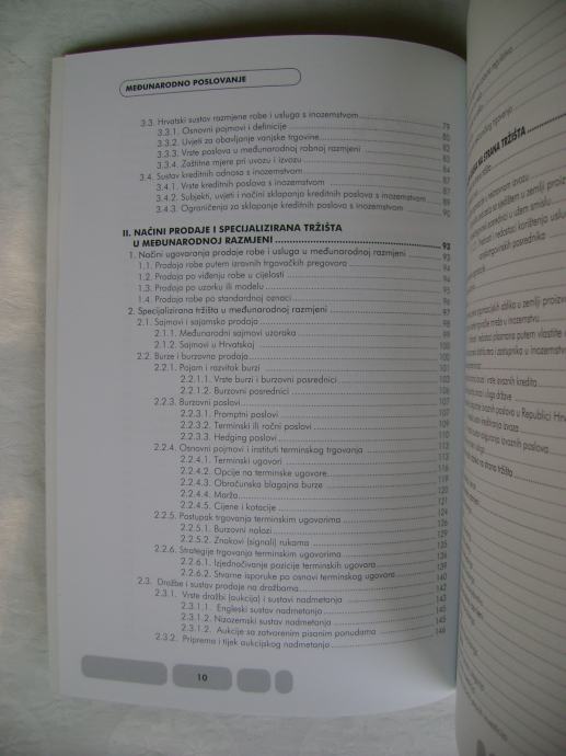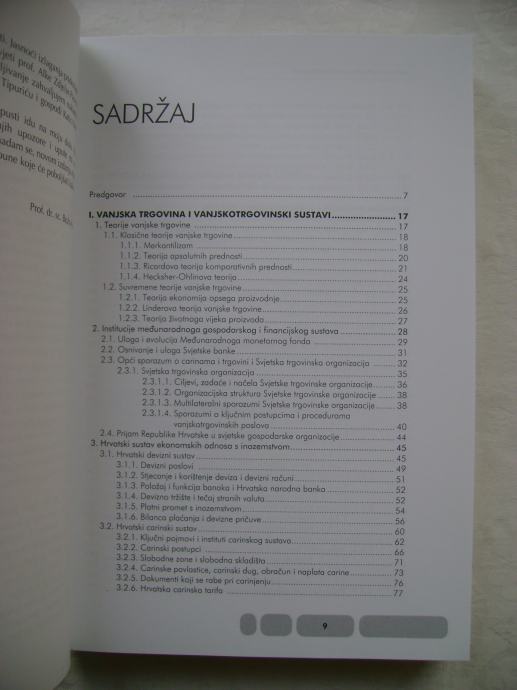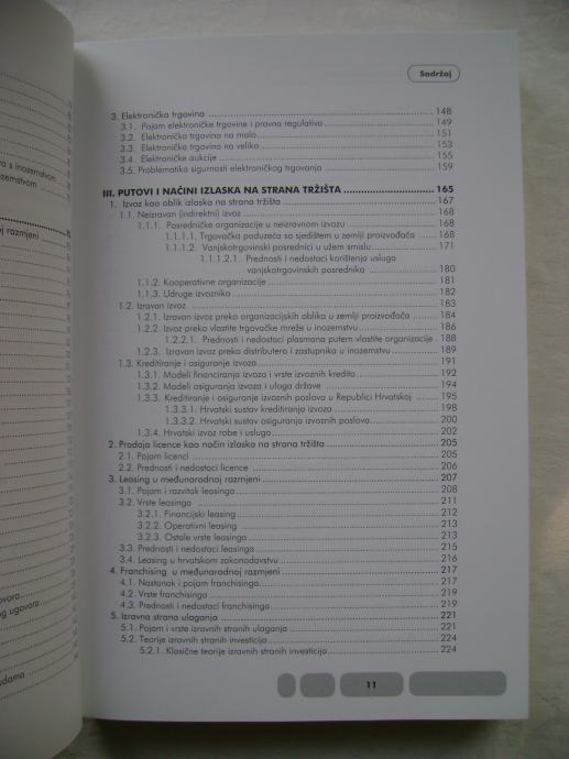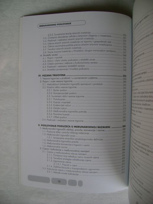 "Knjiga se bavi svim važnijim aspektima gospodarske suradnje s inozemstvom, naročito analizom međunarodnog poslovanja poduzeća. Podijeljena je u šest dijelova. U prvom dijelu analiziraju se osnovne teorije vanjske trgovine, osnove međunarodnog gospodarskog sustava te hrvatski sustav ekonomskih odnosa s inozemstvom. Drugi dio obrađuje načine prodaje i oblike tržišne ekonomije u međunarodnoj razmjerima dok se u trećem dijelu analizira strategija izlaska na strana tržišta. U četvrtom poglavlju govori se o fenomenu vezane trgovine u međunarodnoj razmjeni, dok se peti dio knjige bavi poslovanjem poduzeća u međunarodnim razmjerima. Posljednji dio knjige obrađuje najvažnije sudionike u klasičnim poslovima izvoza i uvoza."