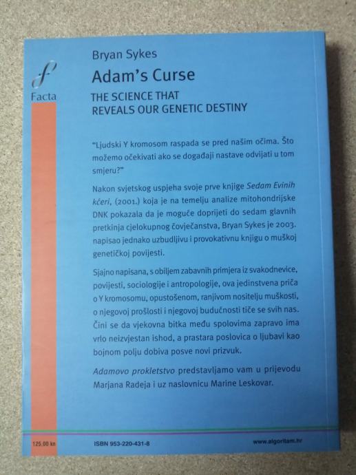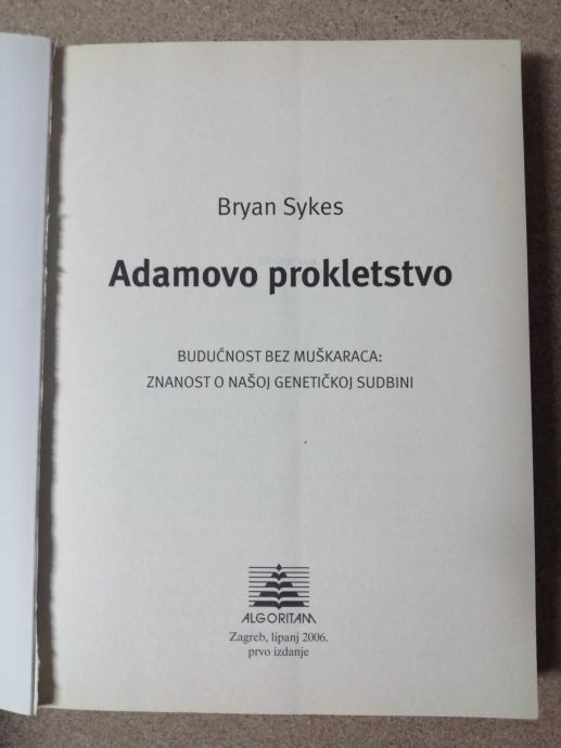 Bryan Sykes – Adamovo prokletstvo. Budućnost bez muškaraca : znanost o našoj genetičkoj sudbini