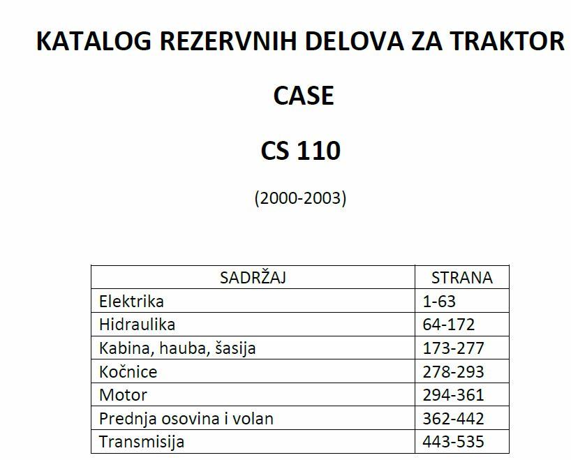 535 strana sa slikama sklopova i kataloškim brojevima dijelova.