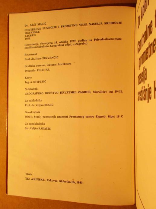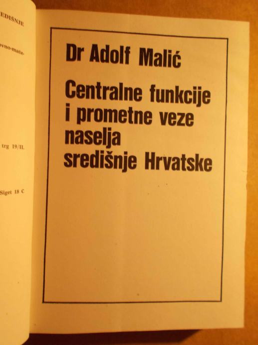 Adolf Malić – Centralne funkcije i prometne veze naselja središnje Hrvatske