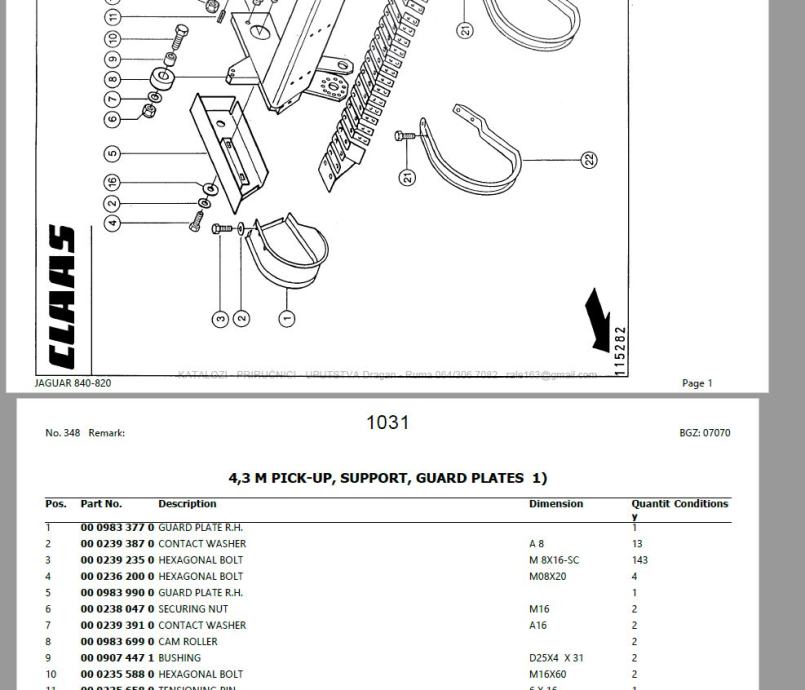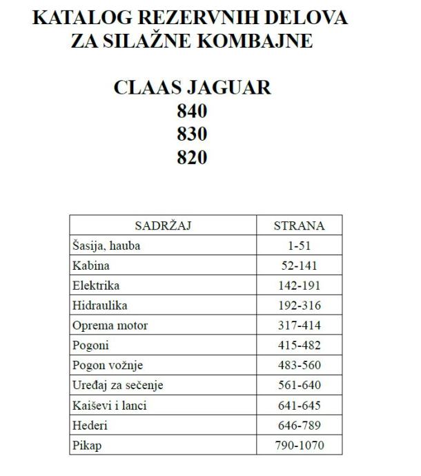1070 strana sa slikama sklopova i kataloškim brojevima dijelova.