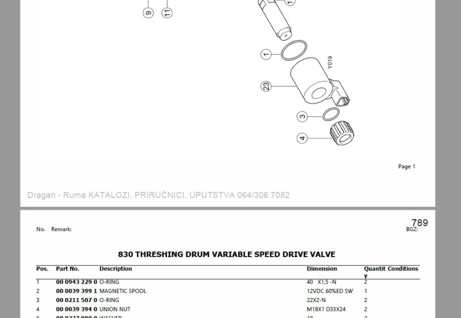 890 strana sa slikama sklopova i kataloškim brojevima dijelova.