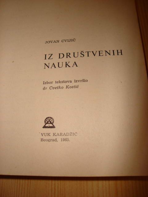 Sociološka biblioteka - Cvijić: Iz Društvenih Nauka