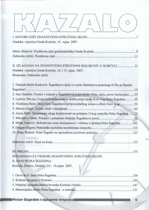 Dani Petra Šegedina, Korčula, 14.-16. rujna 2007. Zbornik radova