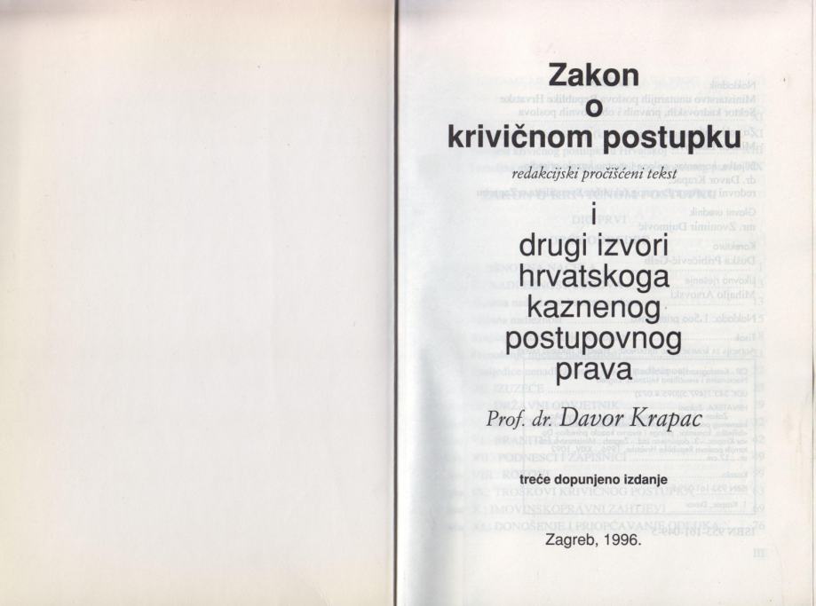 Davor Krapac – Zakon o krivičnom postupku, redakcijski pročišćeni tekst i drugi izvori hrvatskoga kaznenog postupovnog prava