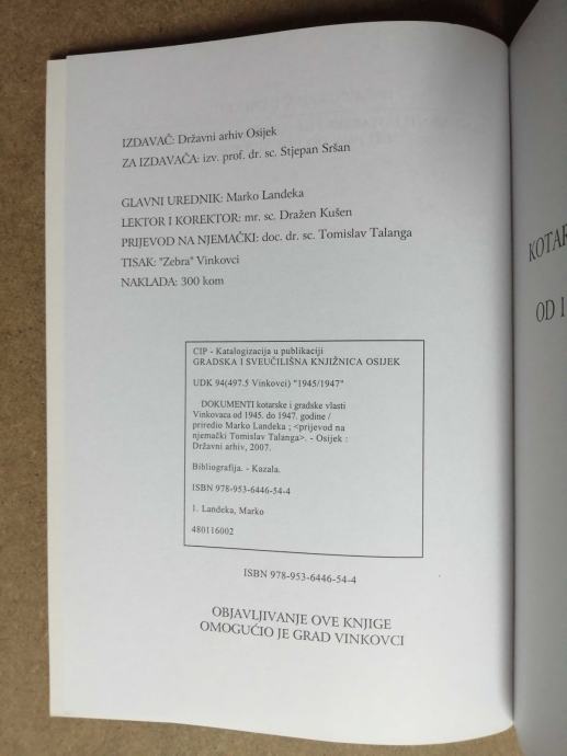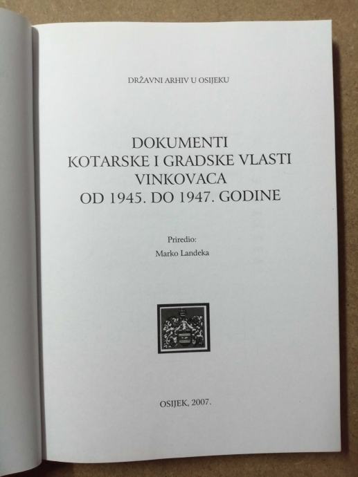Dokumenti kotarske i gradske vlasti Vinkovaca od 1945. do 1947. godine