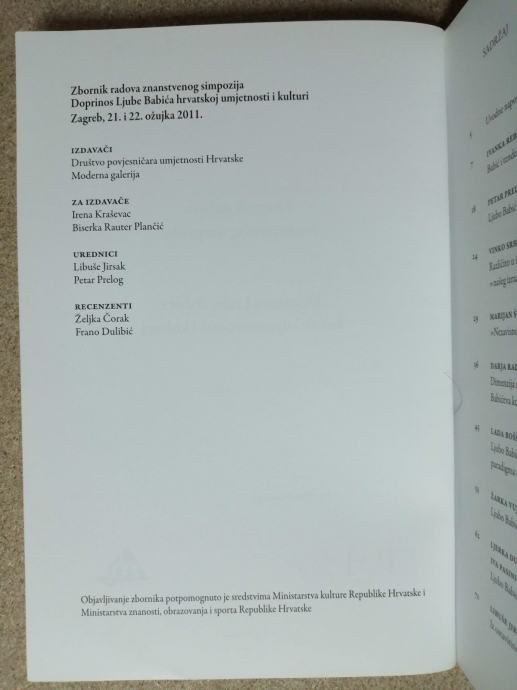 Doprinos Ljube Babića hrvatskoj umjetnost i kulturi. Zbornik radova znanstvenog simpozija, Zagreb, 21. i 22. ožujka 2011.
