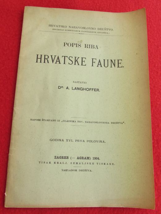 DR. A. LANGHOFFER - POPIS RIBA HRVATSKE FAUNE, Zagreb, 1904. Brošura